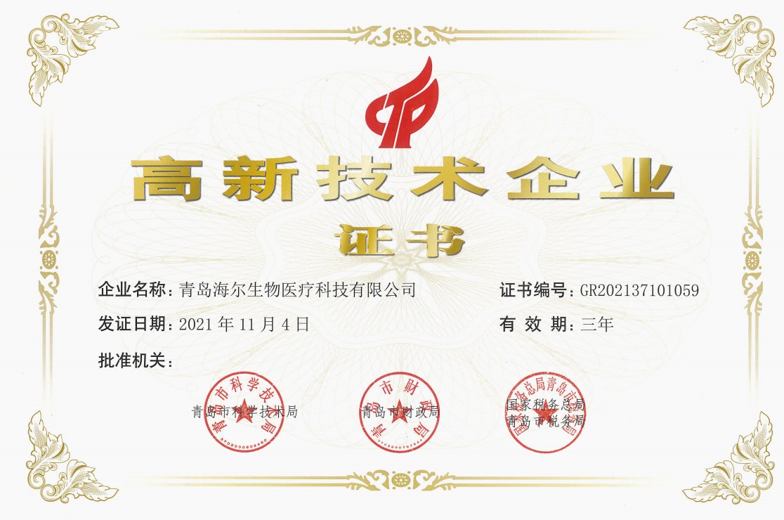 入选“国家高新技术企业”海尔生物再添国家级荣誉!